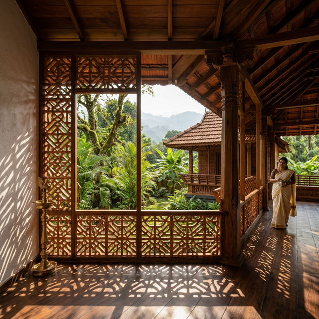 Clay jaali blocks are essential for natural ventilation in Kerala. They promote airflow and cooling while creating artistic shadow patterns in your Pulpally home.